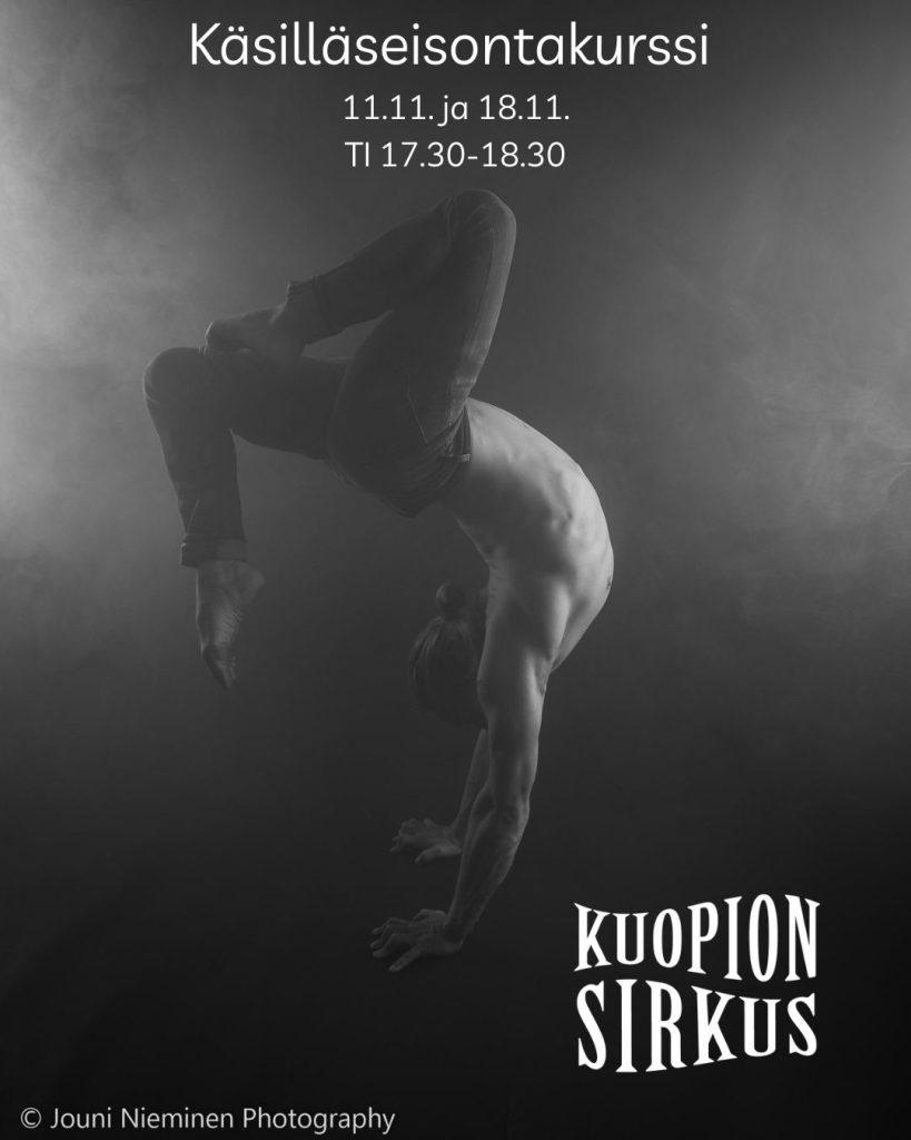 Kenelle: Kaiken tasoisille käsilläseisonnasta kiinnostuneille Mitä mukaan: Joustavat liikunnalliset vaatteet ja vesipullo Milloin: 11.11. ja 18.11.2025 Ti klo 17.30-18.30 Missä: Kuopion Sirkus Siikaranta 4, Kuopio Hinta: 40€ Kurssi toteutuu mikäli minimiosallistujamäärä täyttyy.