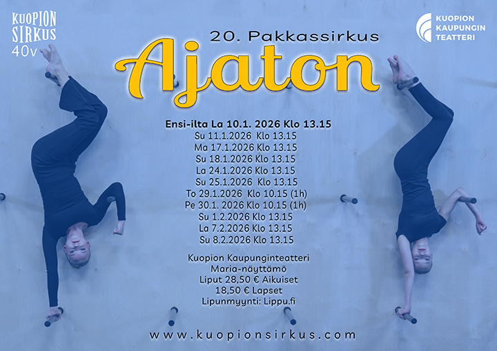 Liput esityksiin ovat myynnissä verkkokaupassa pe 25.4 klo. 13 alkaen: https://kuopionsirkus.com/kauppa/